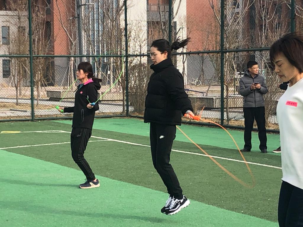 本次比赛项目内容各异,风格迥然,突出了“趣味”与“合作”的主题。此次活动精心设计了踢毽子、乒乓球拍运球以及跳绳三个项目,女教职工们积极参与比赛,男教职工负责裁判,不但是智慧和体力的角逐,还是团结和协作的完美比拼。