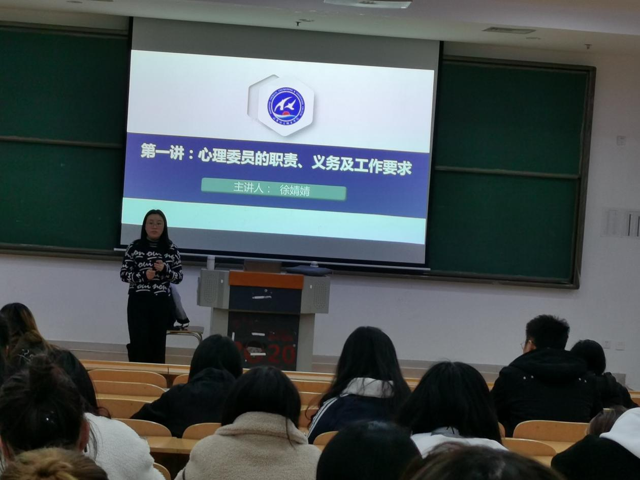 本次心理委员理论培训由基础教学部心理教研室徐婧婧老师讲授。内容主要包括心理委员的职责、义务及工作要求;大学生常见心理问题识;朋辈心理辅导和倾听的技巧四个方面。徐老师系统的讲解了心理委员的角色职责,帮助心理委员能够发现学生中出现的心理异常现象,并及时向辅导员和学校心理老师反映,使其尽快解决。让心理委员能够帮助有心理困难的同学及时前往心理咨询室接受咨询,加强对接受咨询学生的跟踪及反馈,协助心理老师开展心理普查等工作。