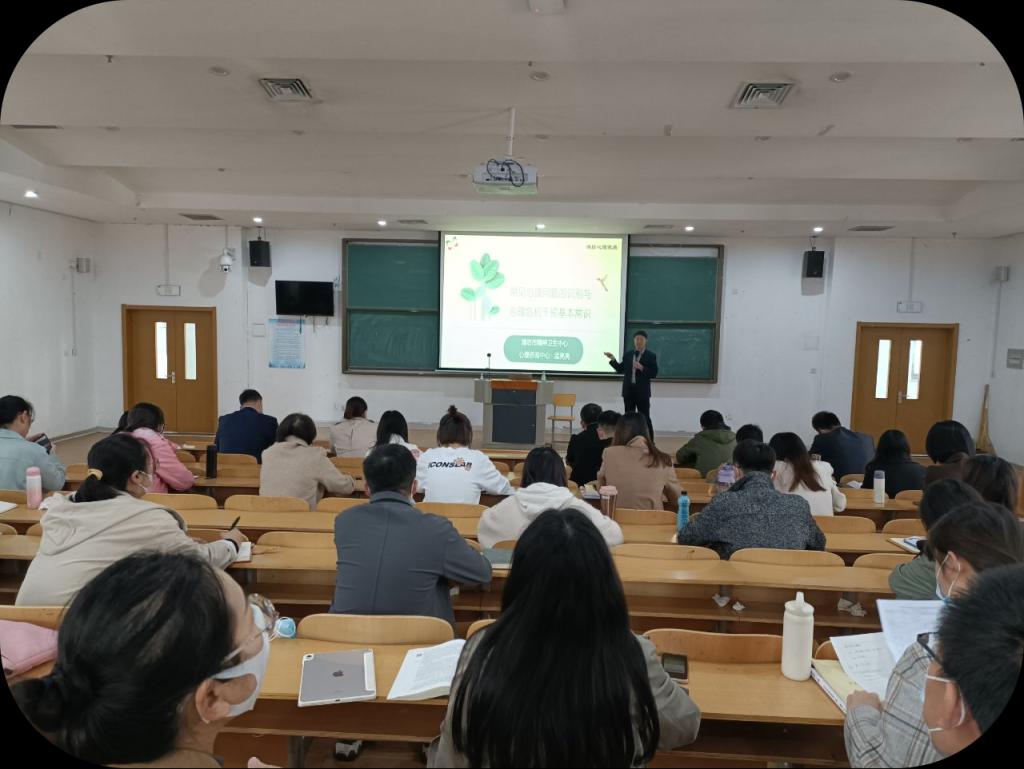 讲座内容围绕常见心理问题的识别和心理危机干预常识两方面来进行。首先,孟主任向大家介绍了健康心理的基本表现,分析了学生出现心理问题时的具体表现,对如何判断学生可能存在心理疾病以及帮助危机者走出困境的途径进行了详细讲解。