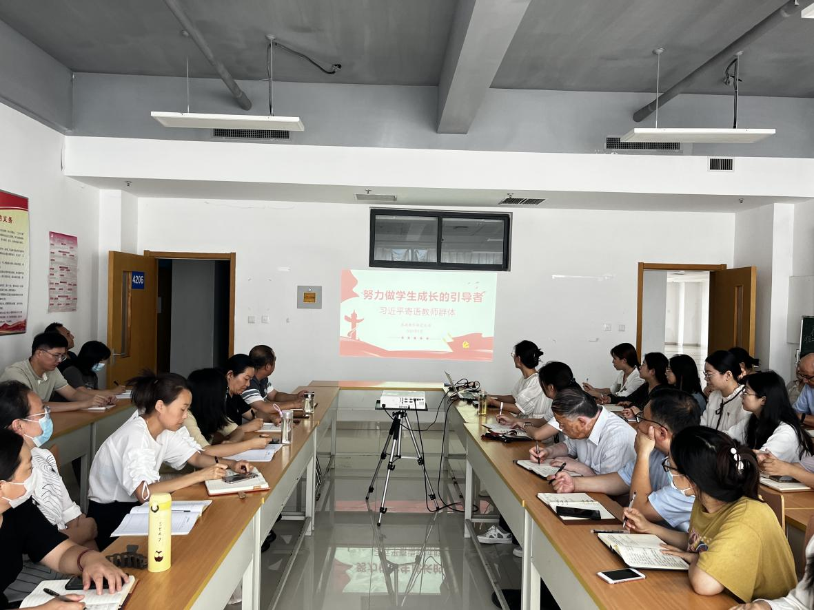 首先,全体教师共同学习了全国优秀教师代表座谈会上习近平总书记致全国优秀教师代表的信。习近平总书记强调,新征程上,希望全国广大教师以教育家为榜样,大力弘扬教育家精神,牢记为党育人、为国育才的初心使命,树立“躬耕教坛、强国有我”的志向和抱负,自信自强、踔厉奋发,为强国建设、民族复兴伟业作出新的更大贡献。
