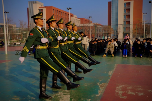 随后,潘慧在讲话中高度赞赏国旗护卫队以往的出色表现,并感谢队员们的辛勤付出与无私奉献,另外希望国旗护卫队再接再厉,不断提升,薪火相传,为维护国旗尊严贡献力量。同时,他宣布会操大赛正式开始。此次大赛涵盖了军姿展示、正步走、齐步走等项目,每个项目都是考验队员们的综合素质和团队协作能力。在两人一组的队列展示中,队员们身姿挺拔、动作整齐,充分展示了国旗护卫队的严谨作风和良好形象,展现出了顽强的拼搏精神和出色的身体素质。