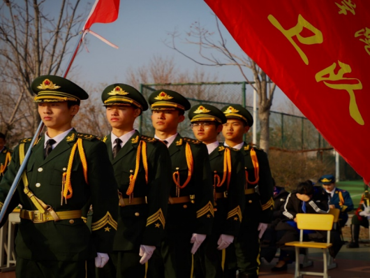 活动伊始,国凯集团董事长郭召德为活动致辞。他说,国旗护卫队是学院的一面旗帜,代表学院参加了学校、机关、幼儿园等单位的升旗仪式,展示出了良好的形象,获得了相应荣誉。他希望队员们在今后的训练和活动中,以更加饱满的热情、更加坚定的信念,取得更加优异的成绩。