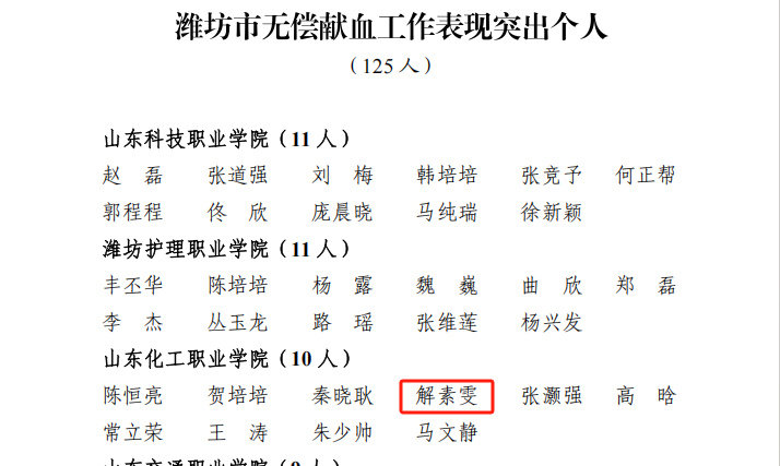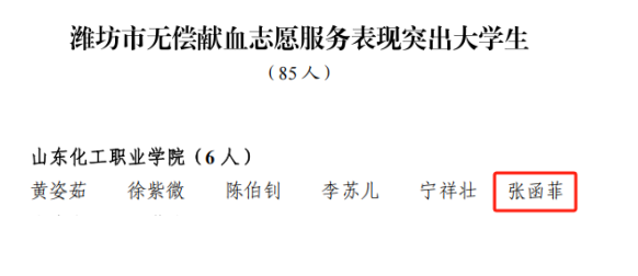 近日,潍坊市无偿献血工作联席会议办公室等6部门联合发出表扬通报,对2025年无偿献血工作表现突出的先进集体和人个进行表彰。学校评为潍坊市无偿献血组织表现突出集体,其中国凯航空学院斩获多项荣誉:学院党支部书记解素雯获评无偿献血工作表现突出个人,学生张函菲获评无偿献血志愿服务表现突出大学生,赵悦豪等30名同学获评潍坊市无偿献血爱心大学生,这份亮眼的成绩单,是国凯航空学院长期深耕无偿献血等公益工作的有力见证。