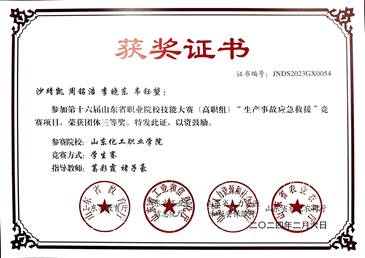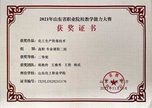 一带一路金砖国家技能发展与创新大赛-绿色安全职业技能赛项二等奖 |