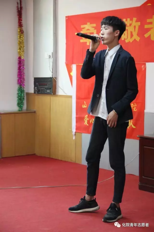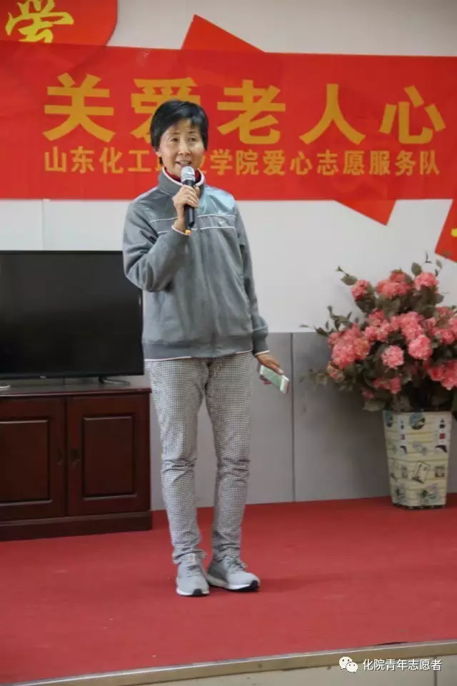 李阿姨上台表演了若干节目,感谢青年志愿者的到来