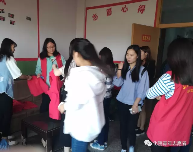 志愿者在四楼办公室签到领取马甲