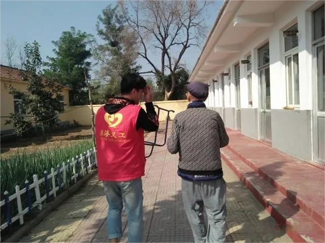 志愿者们沐浴着暖阳和笔直的冬青,一同走进了泊子敬老院,尽自己的所能来帮助院里的老人们。