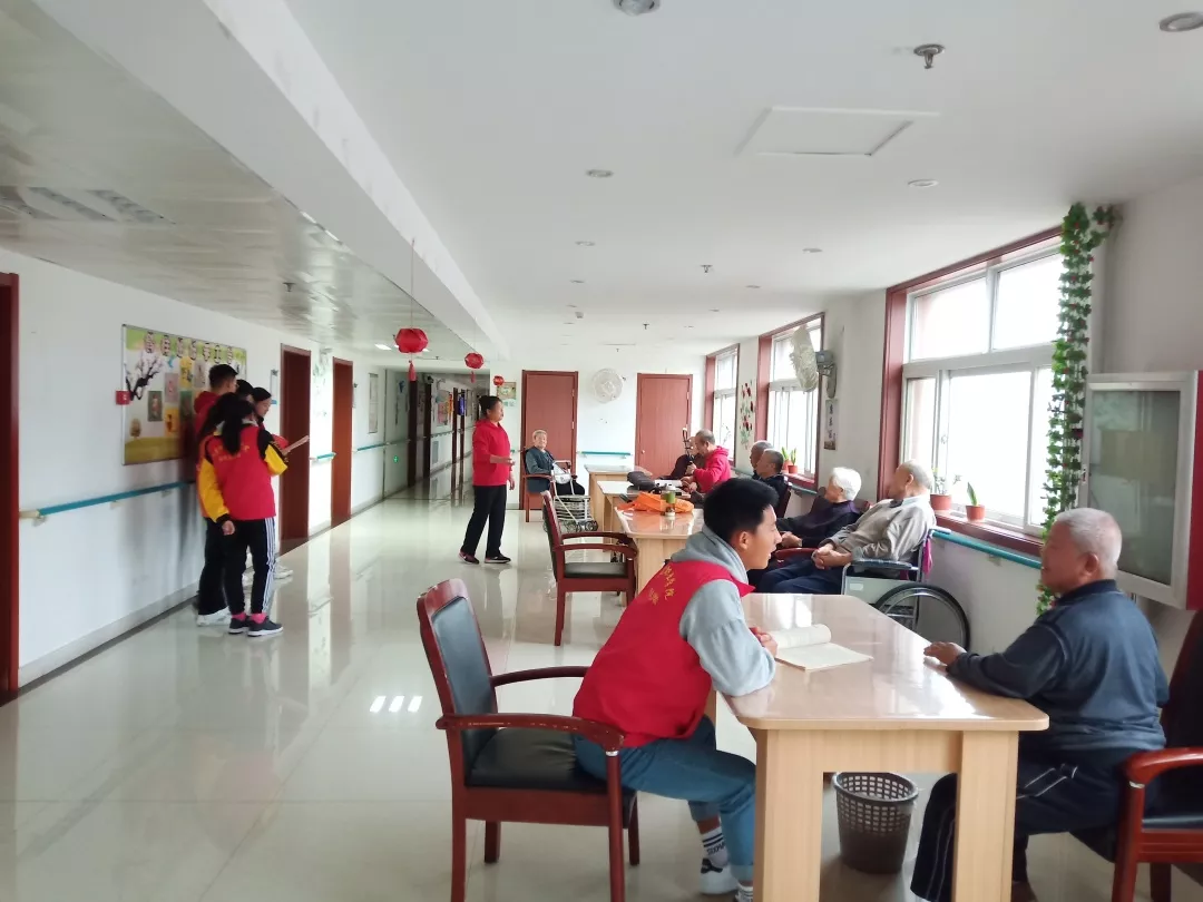 在经过老师的培训后,我们有的进入房间陪老人聊天,有的在房间外的活动区域给老人唱歌讲故事。一首《母亲》引起了老人们的共鸣,老人们情不自禁的拍着手跟着哼起来……