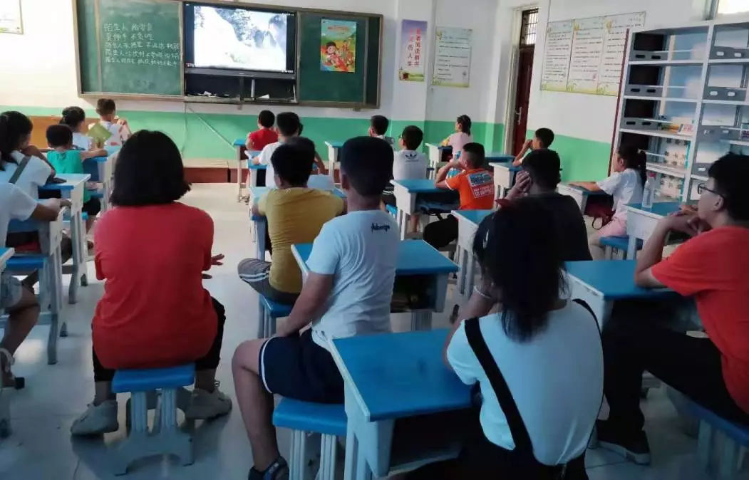 刘庙村今天课程为感恩电影赏析,小朋友们在观看结束后,说出了各自的感受,并纷纷表示要向他们学习,做一个对国家有用的人。