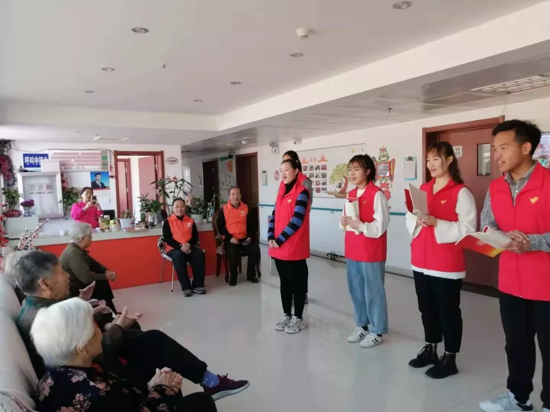 活动开始后我们为老人们唱歌,朗诵,表演手势舞等等,为他们带去了许多欢声笑语。在唱《月亮代表我的心》的时候,一位老奶奶还冲我们比心。
