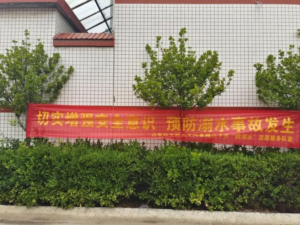 当天上午,伴随着炎热的暑气,山东化工职业学院“三下乡”爱心志愿服务小队乘车来到王青村,在村委副书记的带领下,进入村子进行此次防溺水宣讲活动。