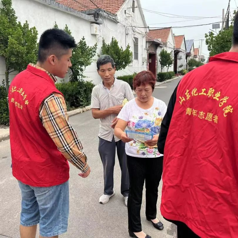 7月19日上午,山东化工职业学院组建的暑期“三下乡”爱心志愿服务小队前往王青村,开展“大手牵小手,安全你我他”暑期“三下乡”溺水救援知识宣讲活动。