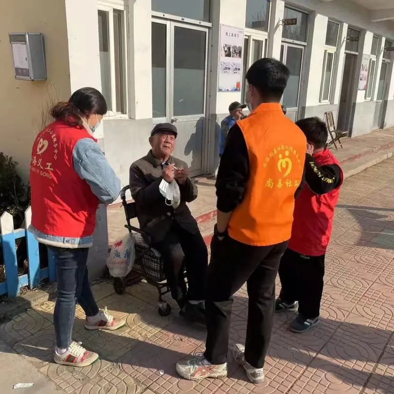 志愿者围绕在老人们身边陪老人们、聊天,平静的小院响起了老人们开心的笑声。