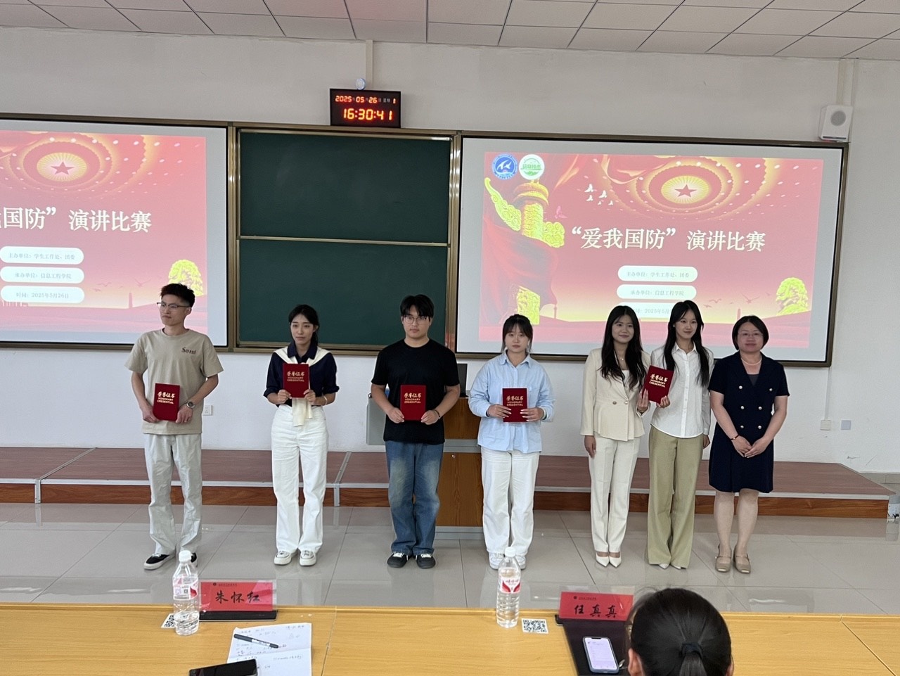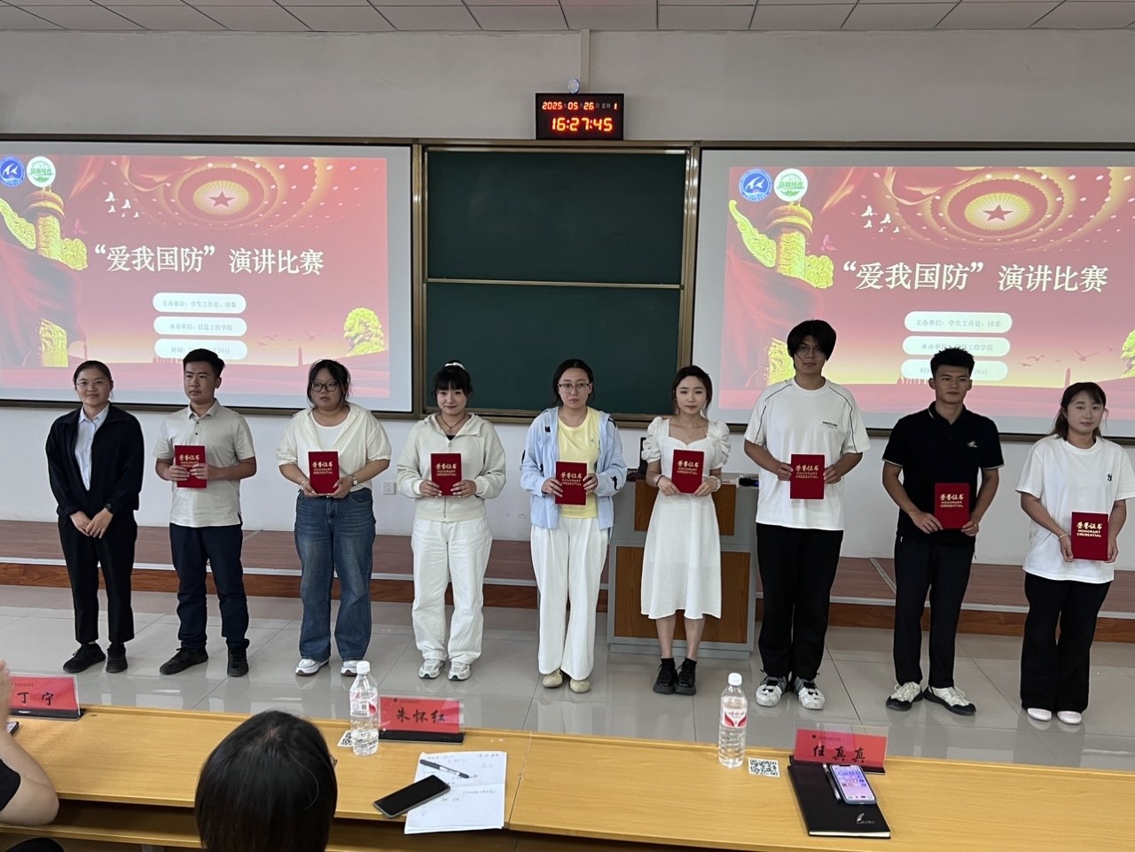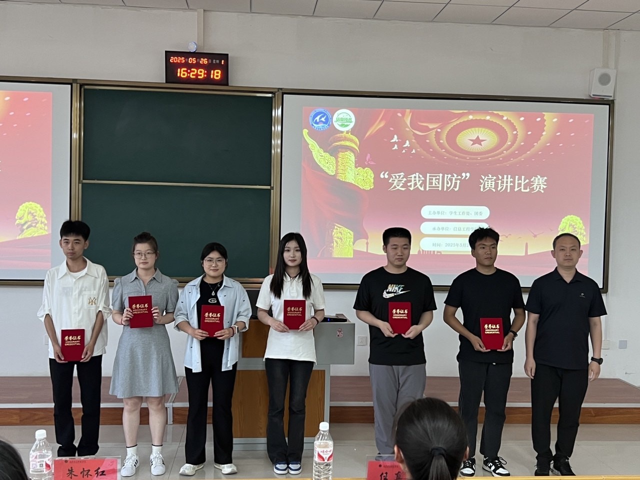 经过评委组严谨打分,大赛最终决出一等奖5组、二等奖6组、三等奖8组。三位评委依次为获奖选手颁发荣誉证书,并合影留念。此次“爱我国防”演讲大赛不仅强化了师生国防观念,更在校园内掀起爱国热潮,点燃青年学子的报国之志。下一步,学校将持续开展形式多样的爱国主义教育活动,培养更多勇担民族复兴重任的时代新人。