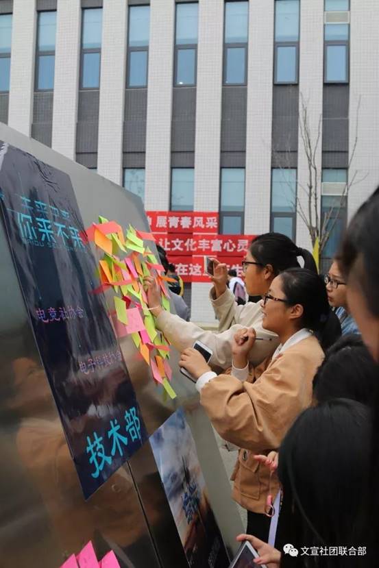 音乐社,舞蹈社,播音社,美漫社,光影社等诸多社团。他们以自己独特的宣传方式,吸引了一批又一批的同学前来观赏。