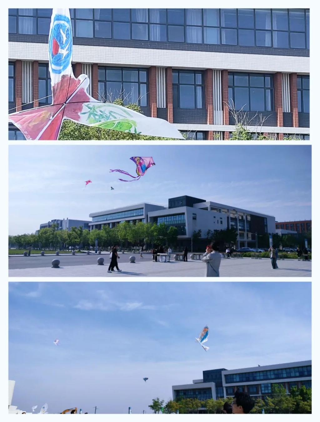 活动为同学们准备了颜料、画笔、贴纸以及空白风筝,参加者拿到材料后便开启他们的DIY风筝之旅。活动现场,同学们的风筝制作精美,造型独特,展现学生的创意和想象力,一笔一划充分体现学生们的细心和耐心。制作完成后,各色风筝争先恐后地冲向云霄,瞬间将湛蓝的天空装点得五彩斑斓。