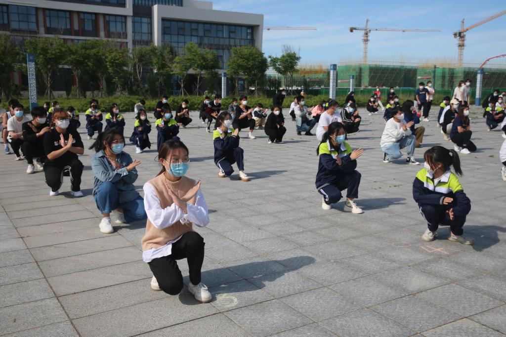 伴随着欢快的音乐声,我们的活动拉开了序幕。第一个环节是由篮球社和心理社同学为我们带来的开场舞,在邱彩云老师的指导下,社团同学带领参与答题的200名同学共同跳了最近风靡全网的本草纲目舞蹈,一曲下来,同学们意犹未尽。
