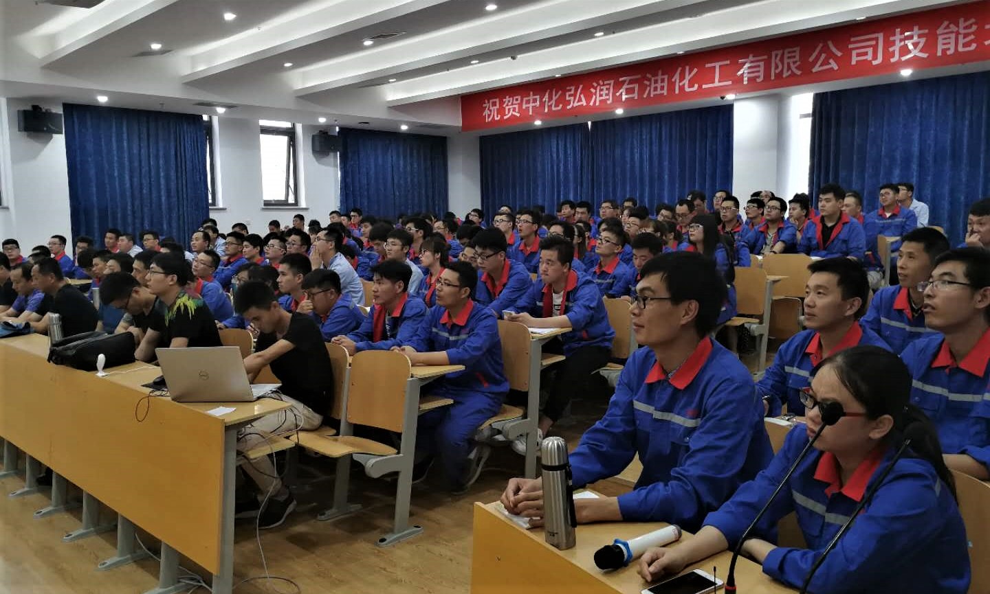 6月15日晚,山东化工职业学院多媒体第二教室座无虚席。来自弘润石化炼化装置的115名学员和其它专业的部分学员济济一堂,参加弘润石化2018炼化岗位技能论坛。