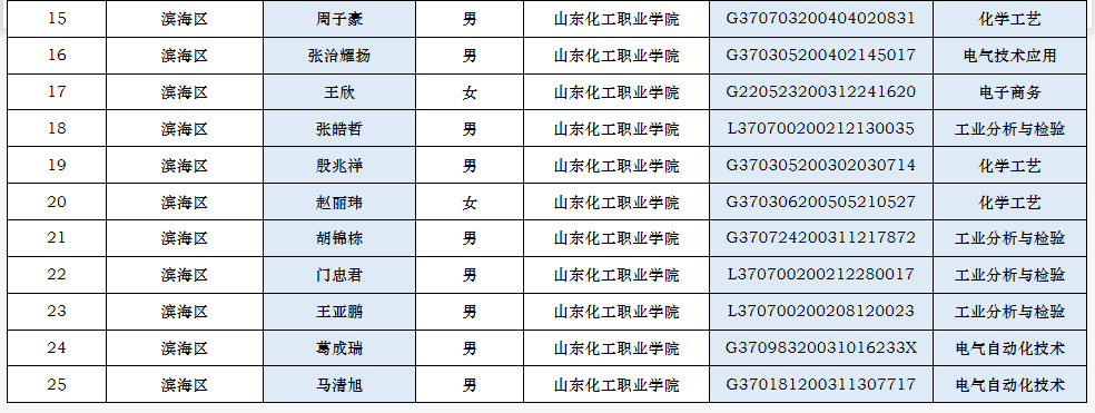 山东省2020学年中等职业学校省级优秀学生干部名单(潍坊地区)