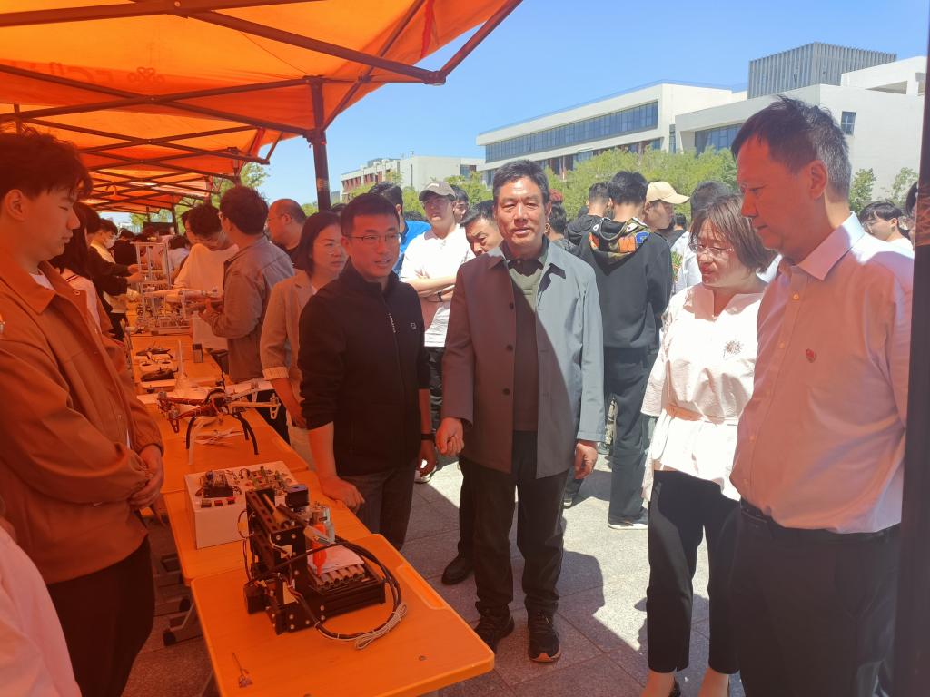 5月15日上午学校东校区职教周活动现场,学校党委副书记潘慧、教务处处长王剑波等领导来到机电工程学院展示区,详细观看了作品展示并与参展师生进行亲切的交流,对学院展示成果给予充分肯定。本次学院共有3D打印快速成型验证平台、垂直起降固定翼无人机、经济型桌面级电梯教学平台、桌面级视觉搬运机械手、超高效动能回收汽车、红外智能自寻迹小车、基于LinuxCNC桌面雕刻机控制系统等七个项目参加职教周活动成果展示,其中本次展览作品在刚刚结束的第二十一届(2024年)山东省大学生机电产品创新设计竞赛中取得佳绩。
